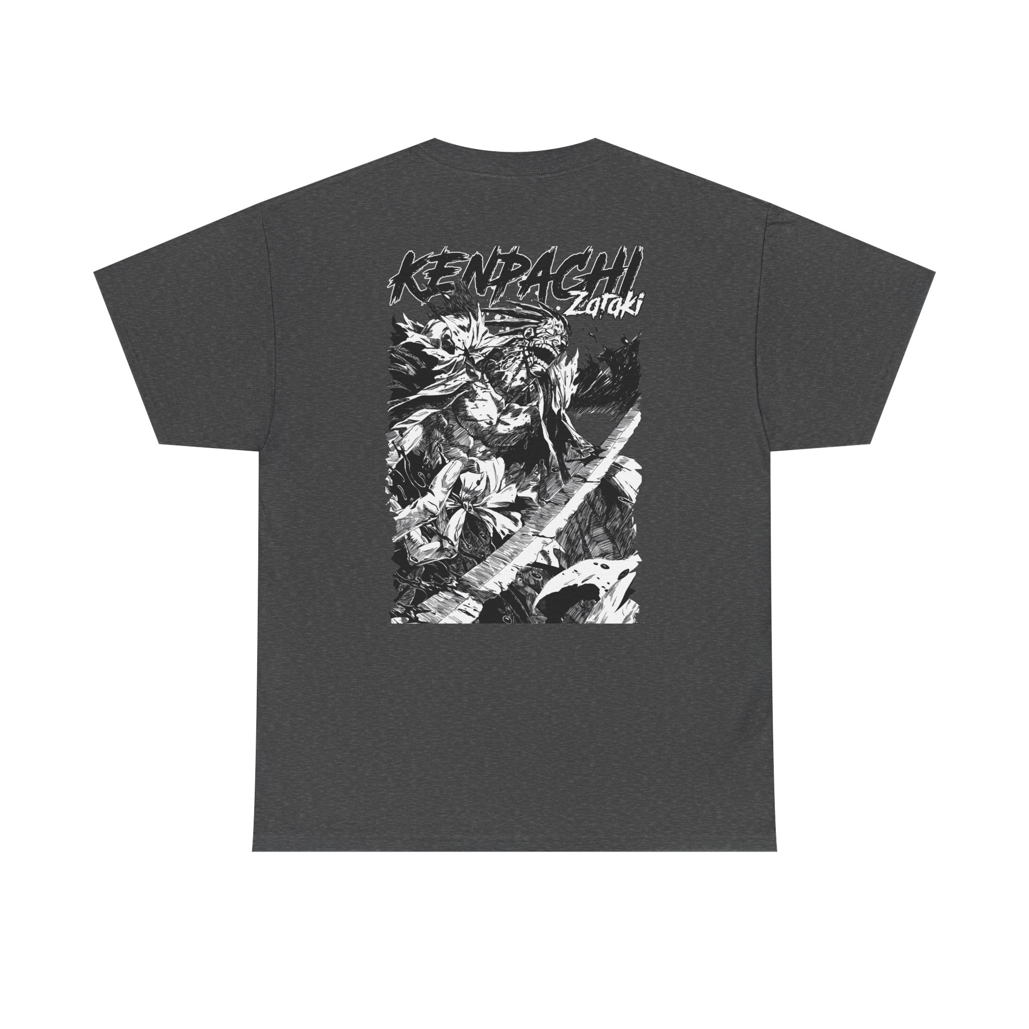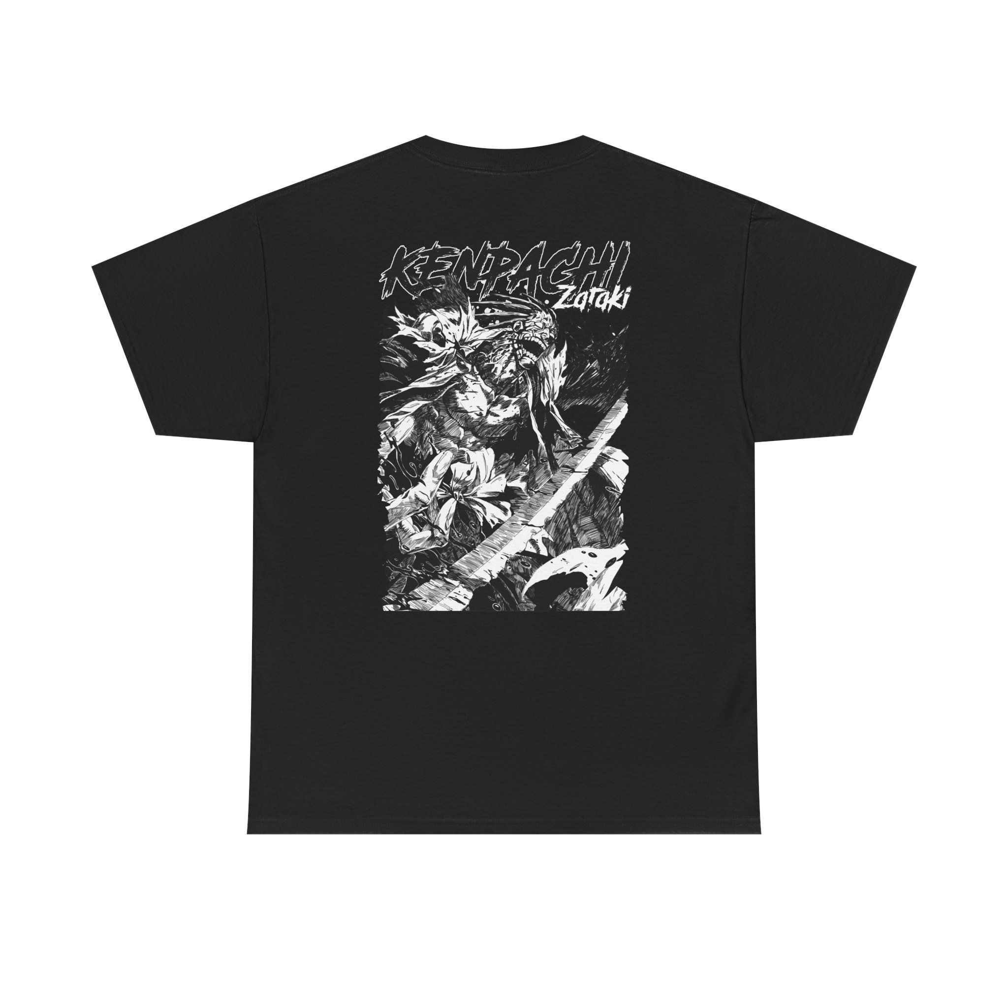 This Kenpachi Graphic Tee brings bold manga energy into everyday wear. Printed with dense, high-contrast artwork on the back and a small chest emblem, the shirt reads like a panel ripped from a favorite battle scene — gritty, detailed, and full of motion. The substantial 180 g/m² cotton gives the print a solid base and a lived-in feel after each wash, while the classic crew and relaxed fit make it easy to layer under a jacket or wear on its own. Wear it to conventions, late-night anime screenings, or when you want your wardrobe to speak a little louder about what you love.