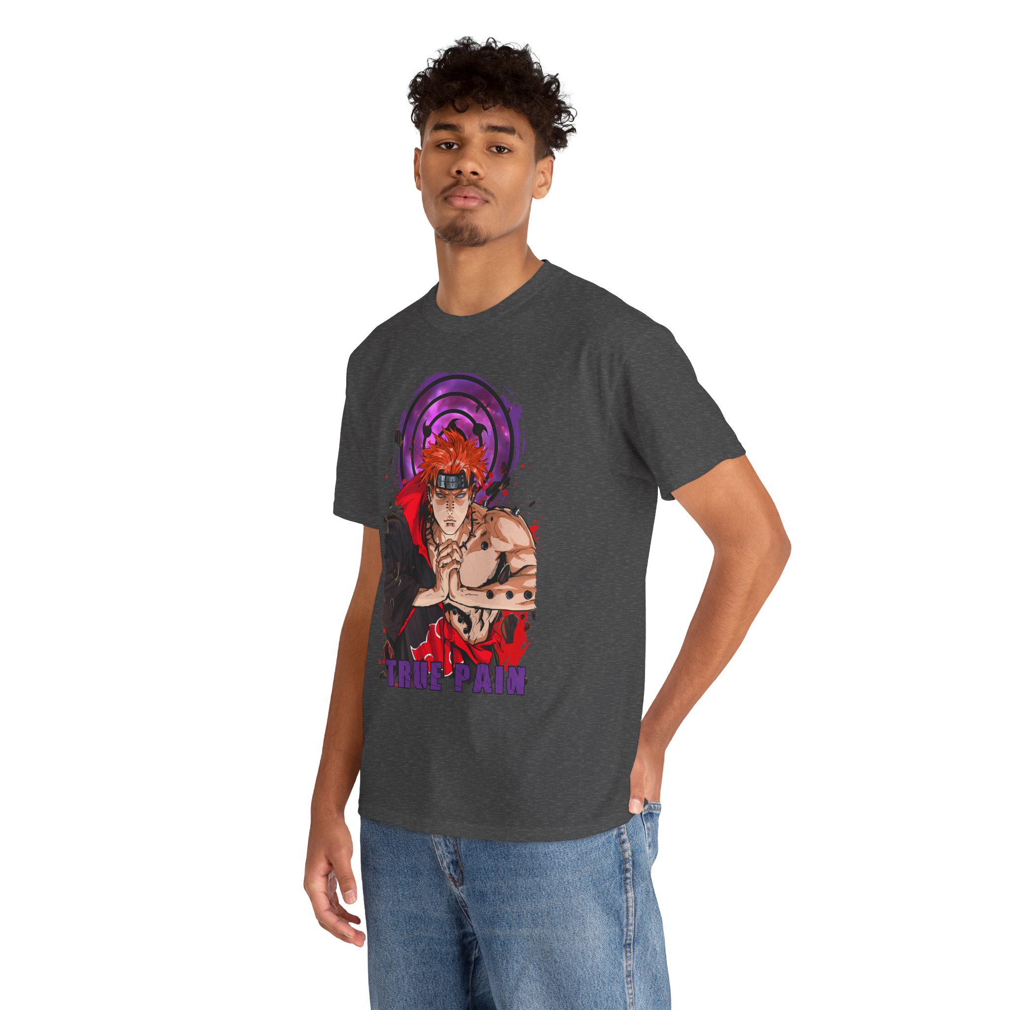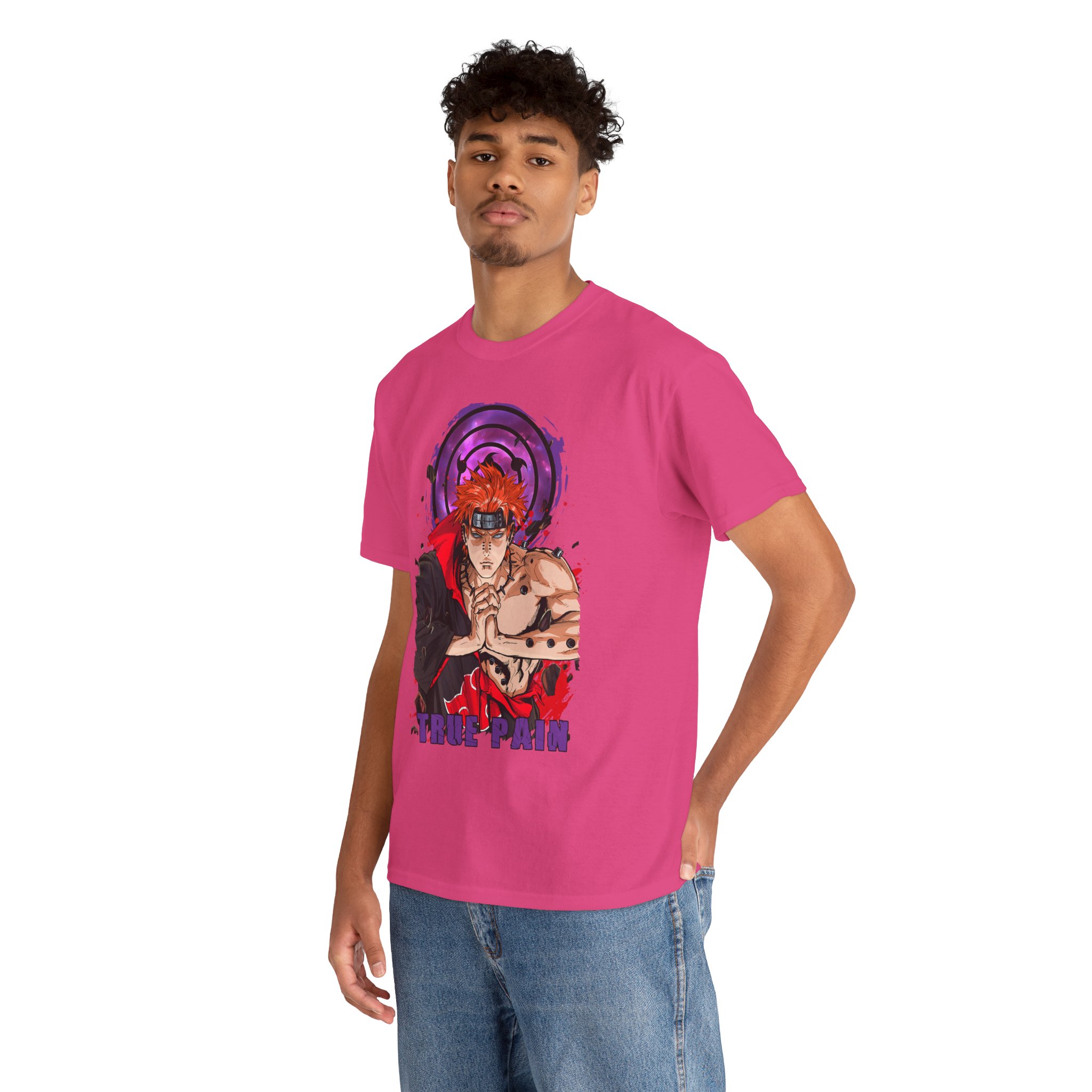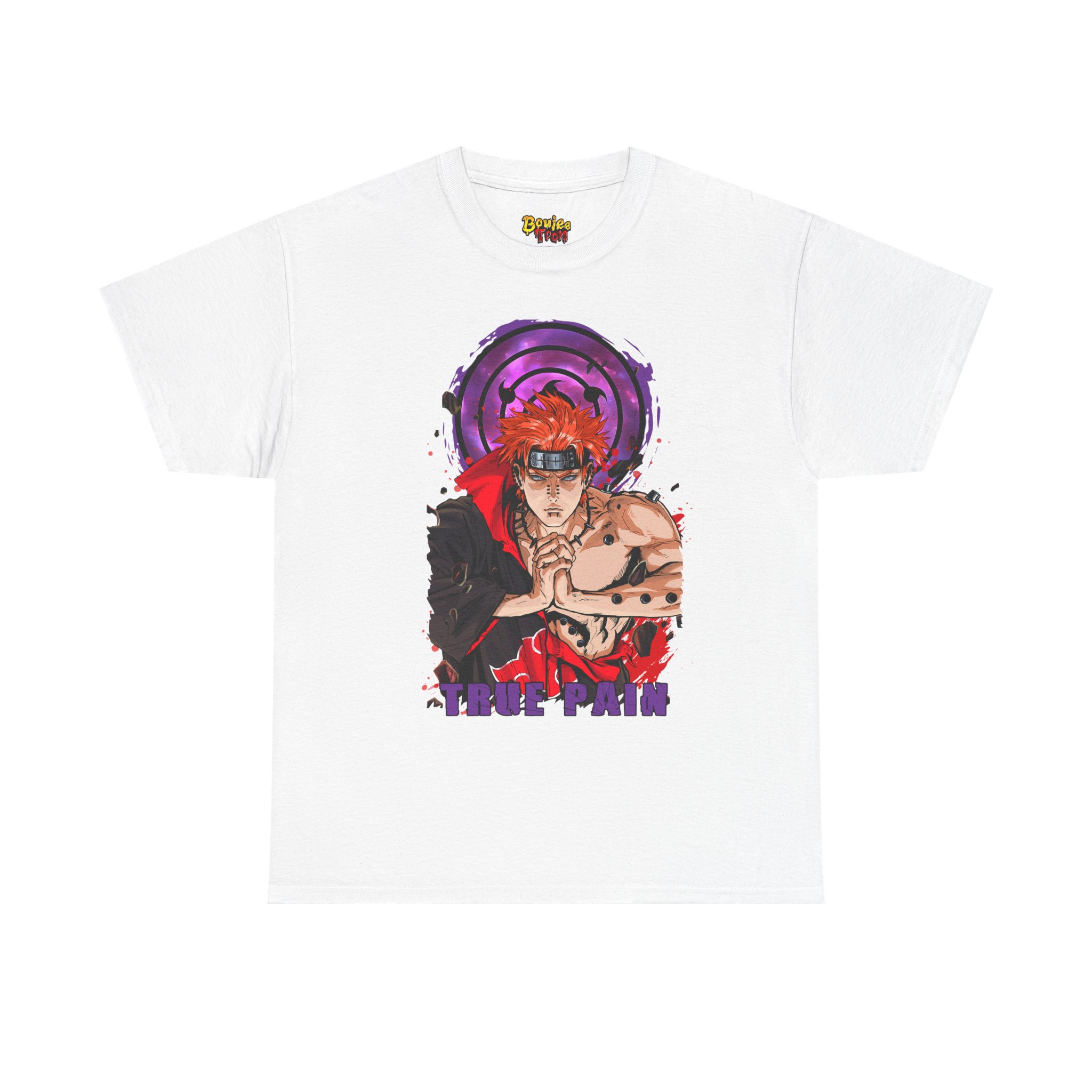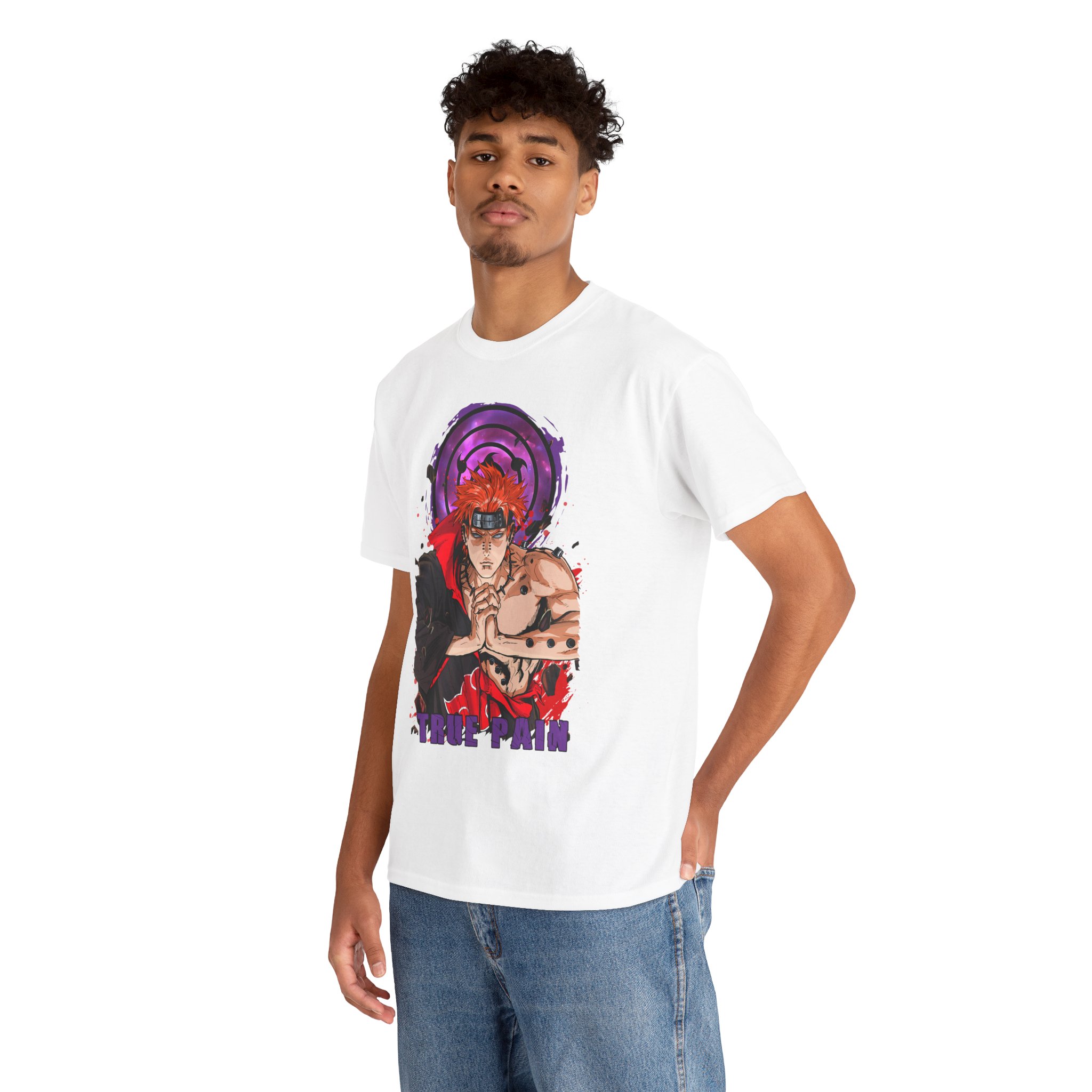 This Pain Graphic tee carries a bold, anime-driven energy — vivid inks bring a fierce, focused character to the front chest, framed by a deep purple motif that feels like concentrated intent. It sits like a statement piece in everyday wear: roomy enough for comfort, crisp enough to let the artwork speak. Wear it when you want to channel that fighter’s calm before action, whether you’re meeting friends, heading to a convention, or just layering it under a jacket for a street-ready look. The white base makes the colors pop and keeps the vibe clean so the design remains the instant focal point.