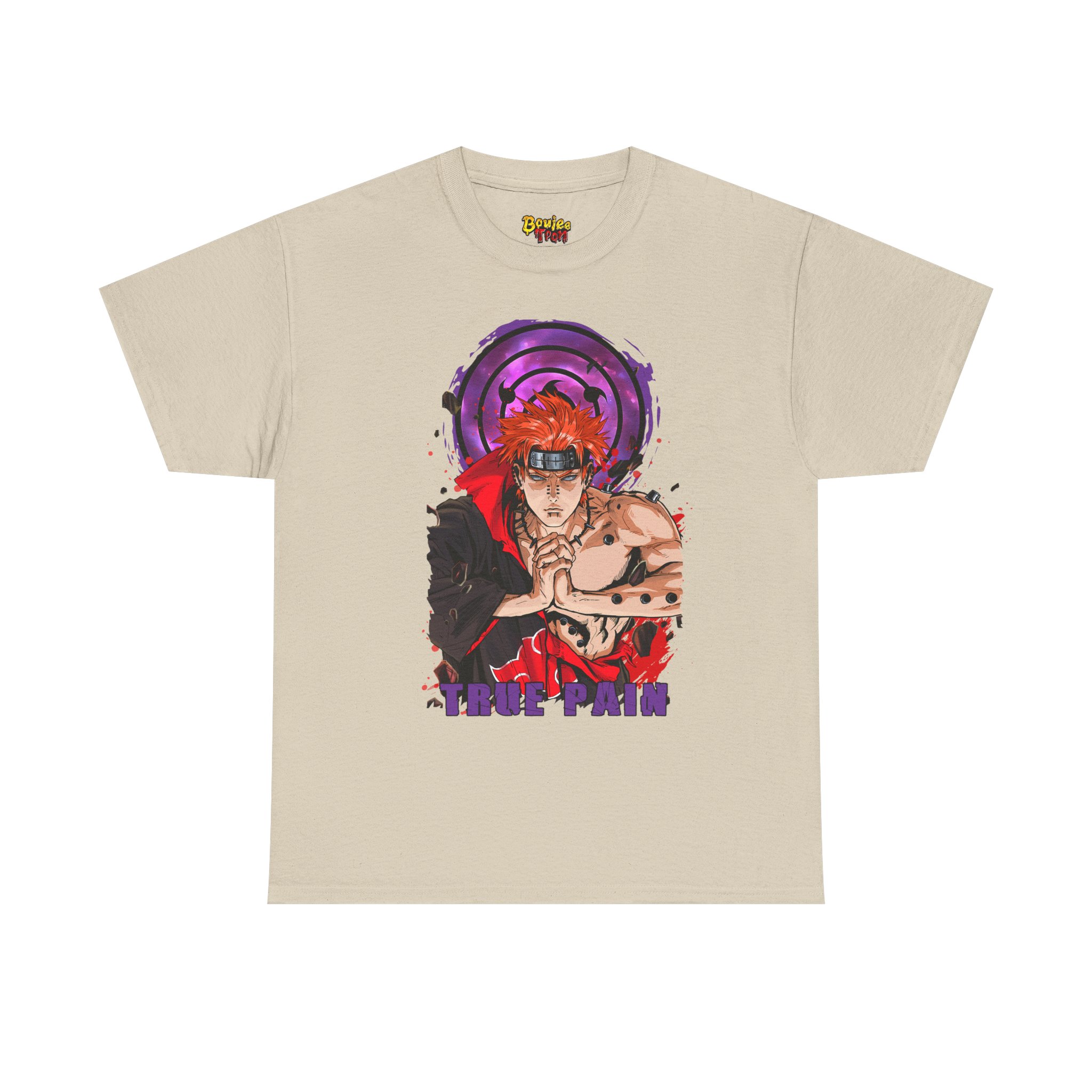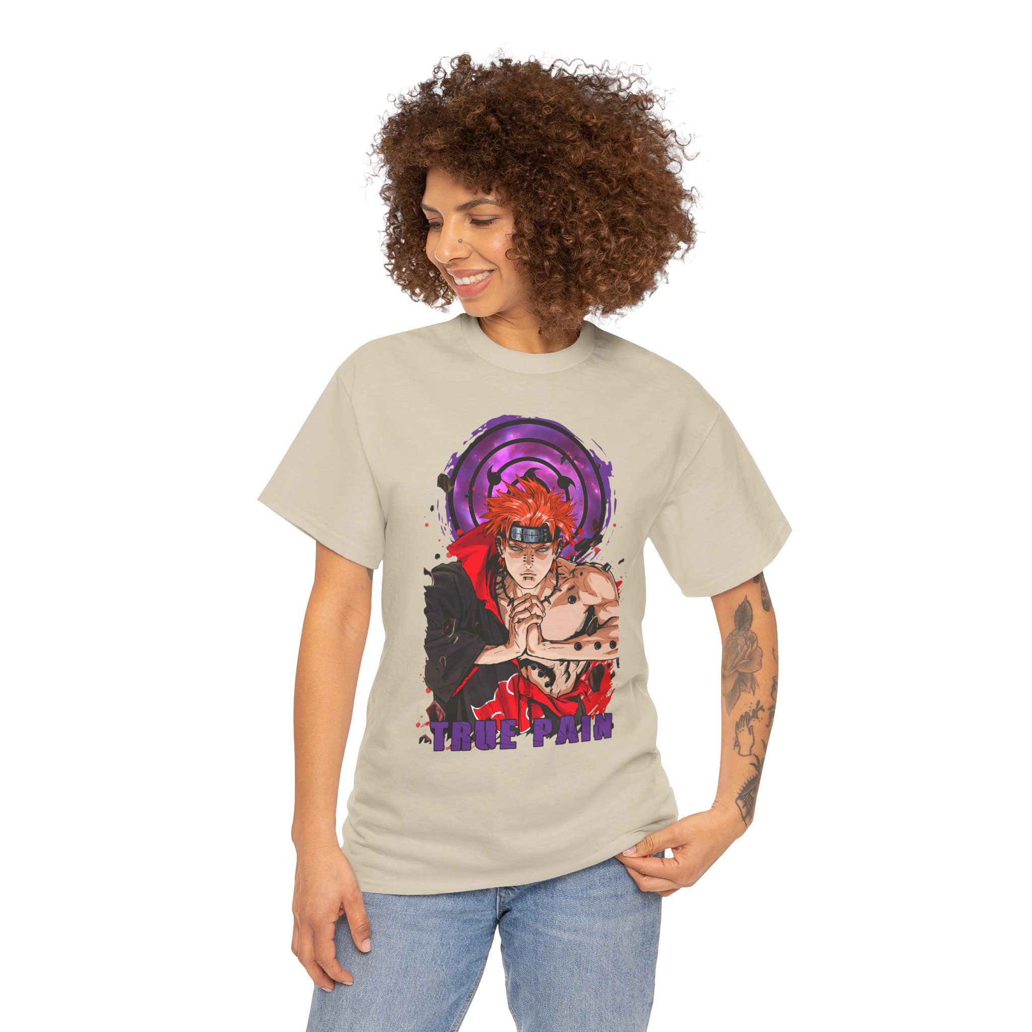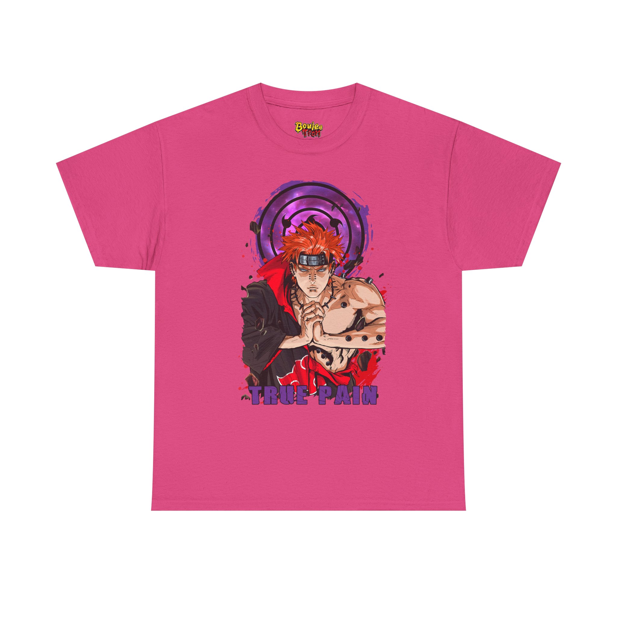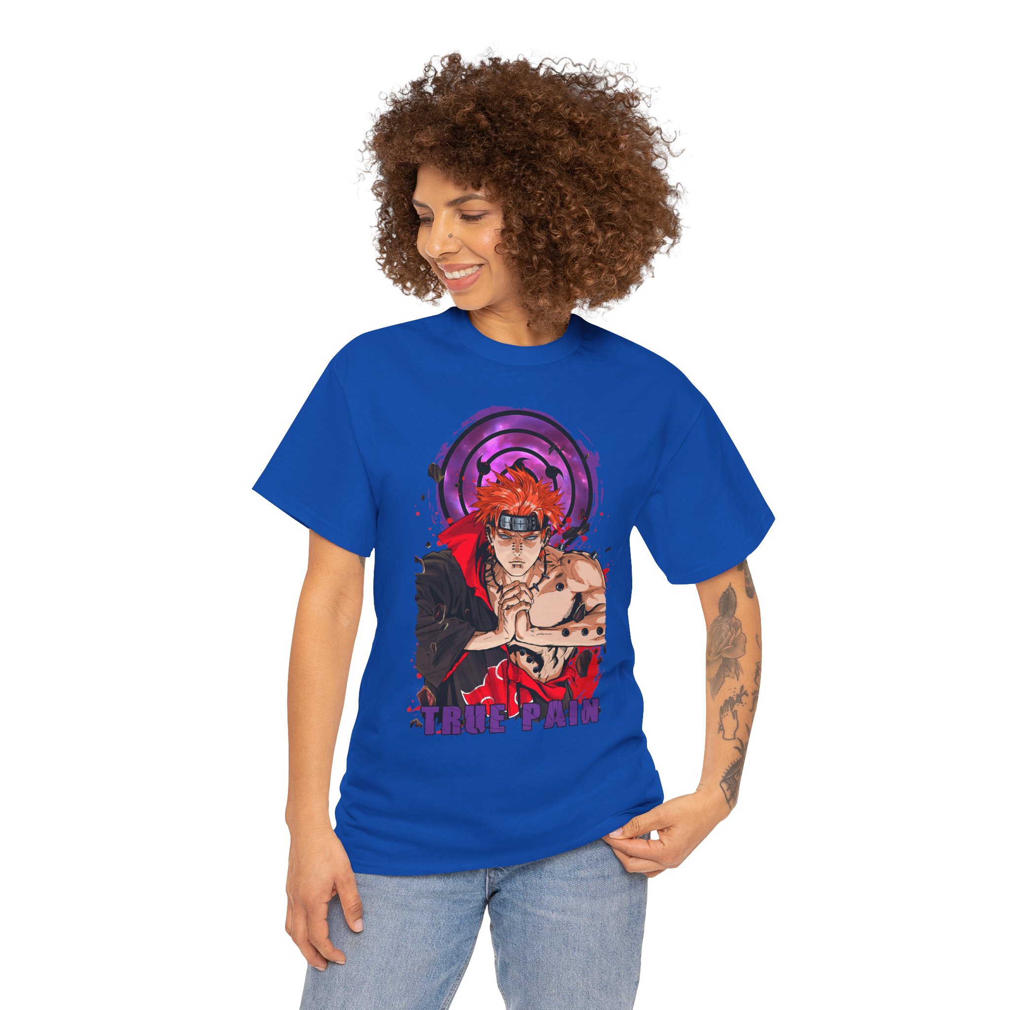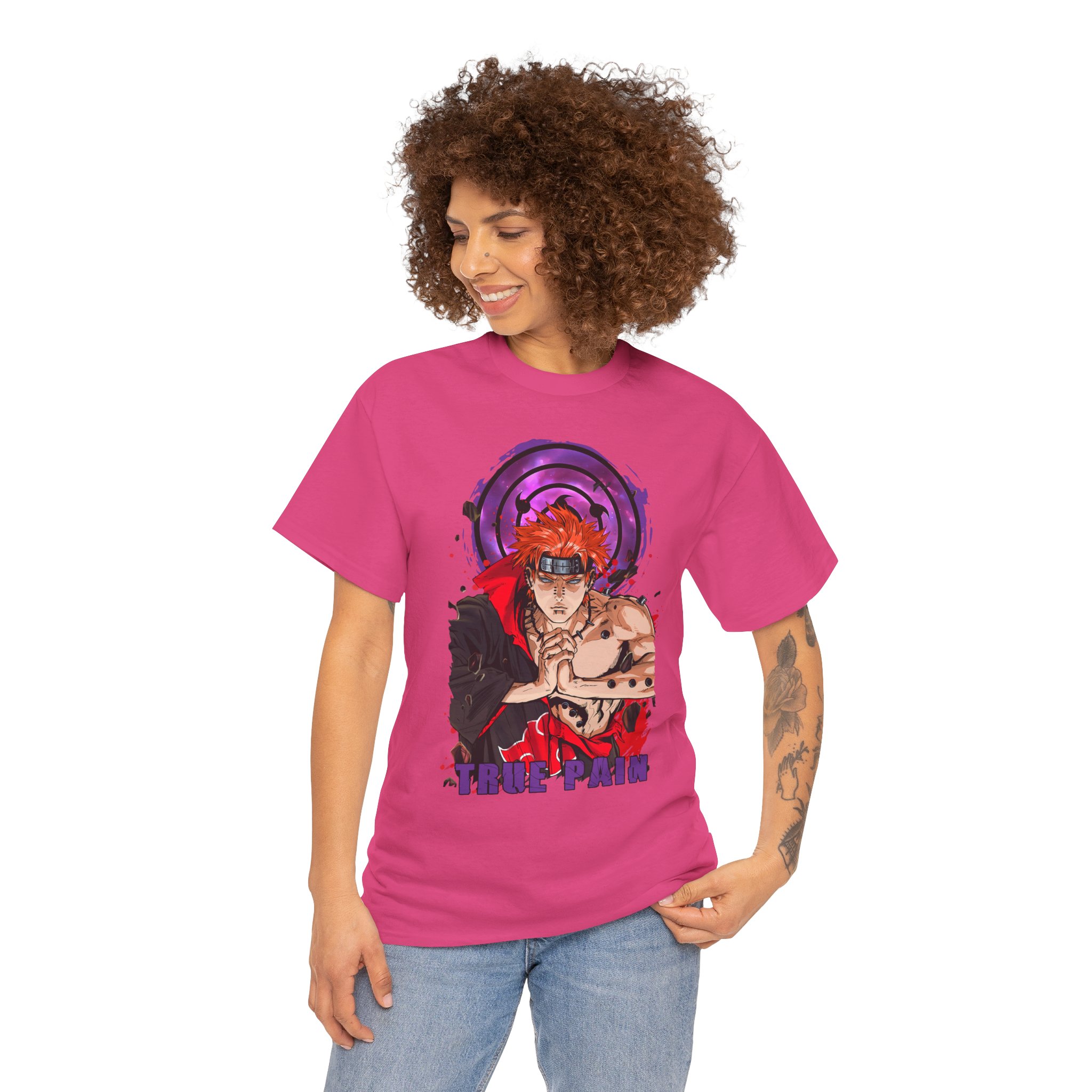 This Pain Graphic tee carries a bold, anime-driven energy — vivid inks bring a fierce, focused character to the front chest, framed by a deep purple motif that feels like concentrated intent. It sits like a statement piece in everyday wear: roomy enough for comfort, crisp enough to let the artwork speak. Wear it when you want to channel that fighter’s calm before action, whether you’re meeting friends, heading to a convention, or just layering it under a jacket for a street-ready look. The white base makes the colors pop and keeps the vibe clean so the design remains the instant focal point.