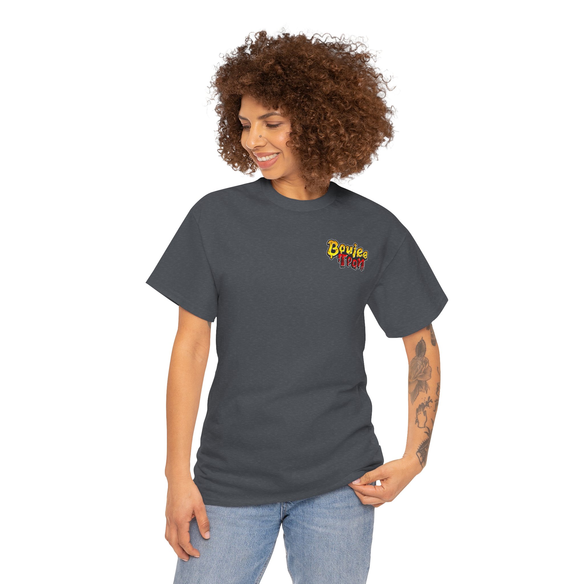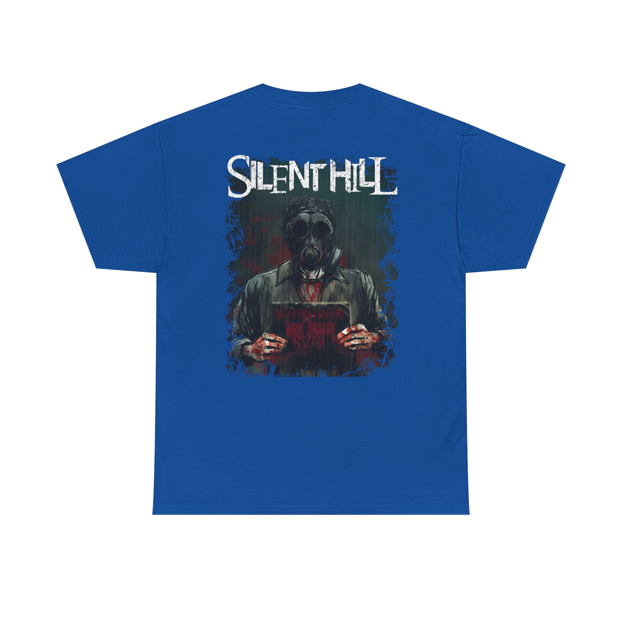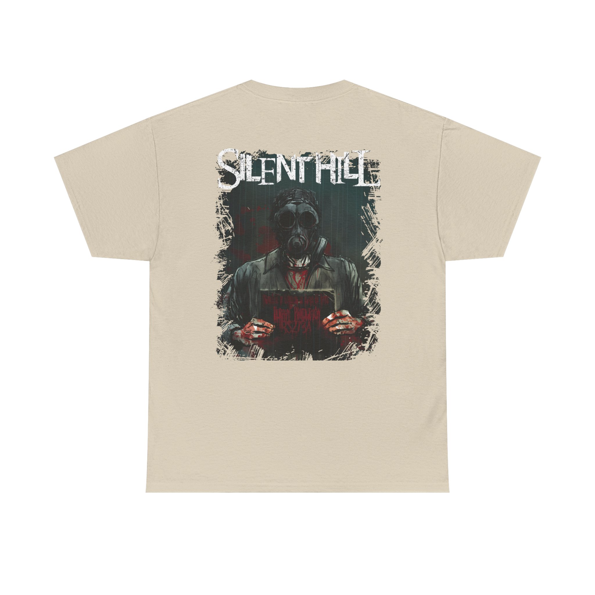 This Silent Hill Resident Graphic Tee carries a dark, cinematic energy — a quiet scream on soft fabric. The front chest shows a small, retro-styled logo while the back reveals a high-contrast horror scene: a masked, haunted figure framed by torn edges and distressed textures. Wear it to signal your love for eerie storytelling and cult horror aesthetics. It pairs with worn denim, layered flannels, and late-night cinema runs. The shirt sits comfortably with a relaxed crew neckline and holds its print detail wash after wash, so the image keeps its gritty intensity through the seasons.